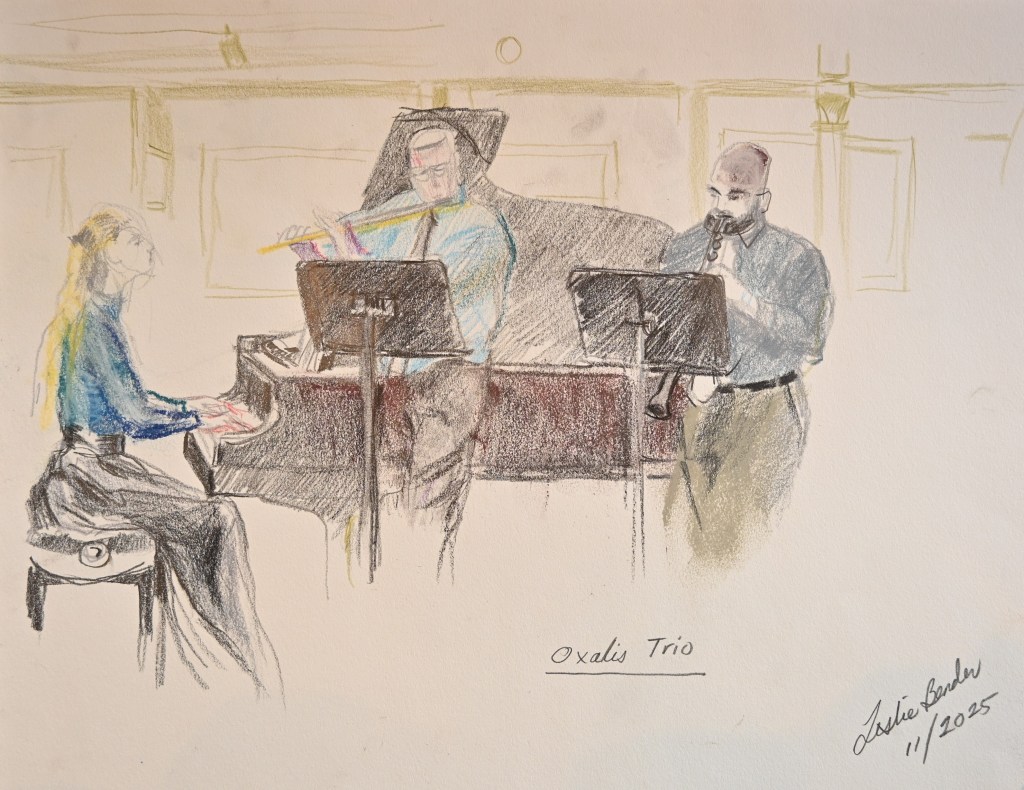 “Oxalis Trio”, sketched live by Leslie Bender,